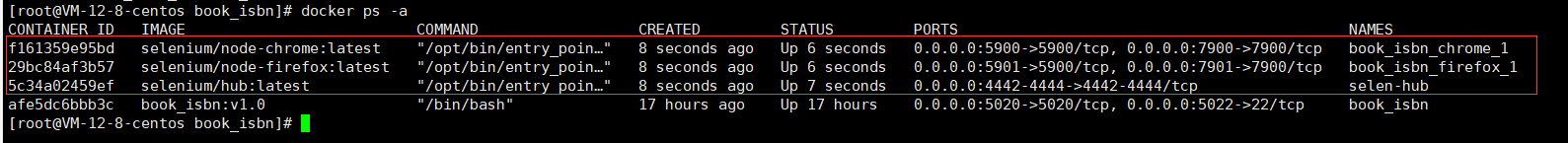 执行完后,通过docker ps -a查看容器列表,如图所示,添加了3个容器(容器需要加name的,自己添加一下container_name参数;还有个firefox不需要的就删除或者注释掉就行。):