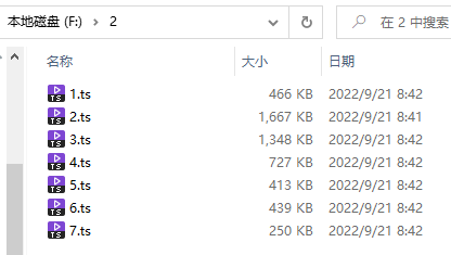 把所有的.ts文件放到一个文件夹中,比如我放到 F:\2 文件夹中。如下图所示: