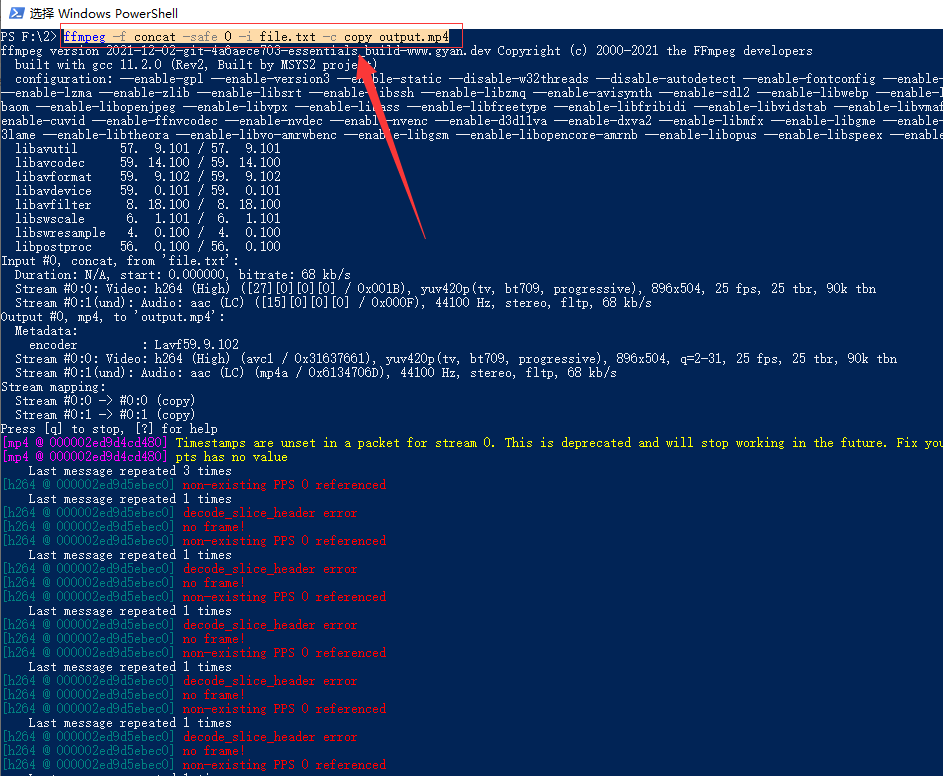 1 | ffmpeg -i "concat:1.ts|2.ts|" -c copy output2.mp4 |
