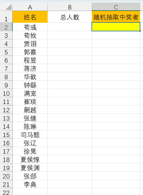 如下图所示,要在这一列姓名中随机抽出一个人来。