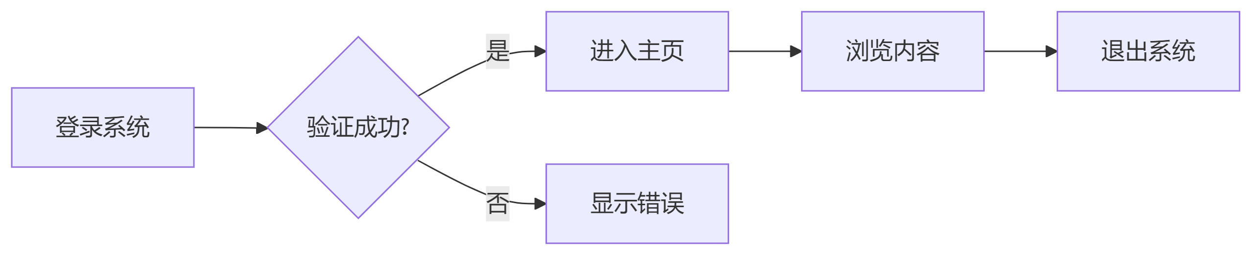 -->:实线箭头---:无箭头实线-.->:虚线箭头-- 文本 -->:带文字的连接线(如|是|)