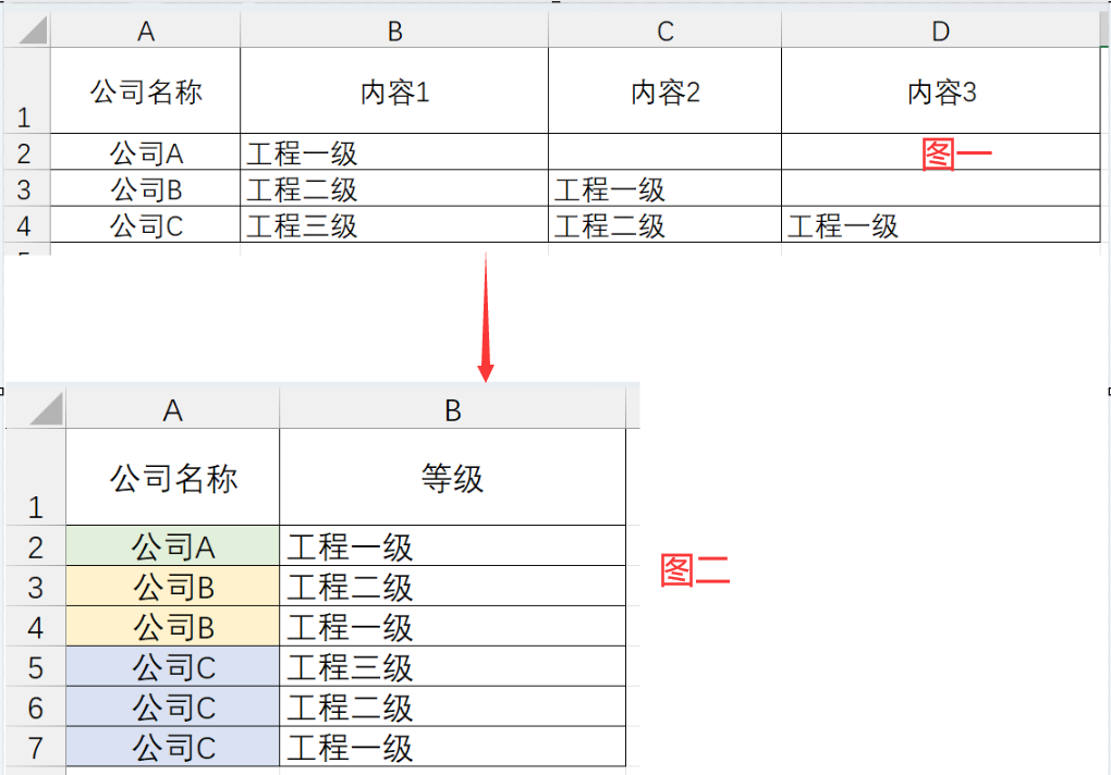 用 Python处理Excel中的数据,把以下图片中的图一转到下面图二的形式: